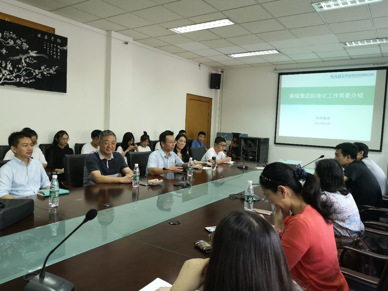 石卫军处长从南瑞集团标准化工作整体框架、近年标准化工作成果、参与的重大标准化项目等方面简要介绍了南瑞集团标准化工作。随后,张海滨经理对泛在电力物联网及技术标准体系进行了详细介绍。张妍主任表示南瑞集团同5845cc威斯尼斯人下载已开展了科研、产品、项目、标准等多方面的合作,希望双方进一步加强各层级交流合作,特别是泛在电力物联网智能感知、人工智能技术攻关及标准制定方面,也欢迎更多的优秀毕业生加盟南瑞集团。